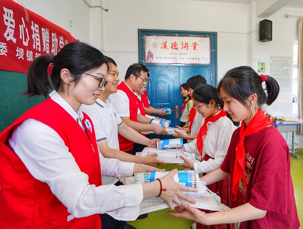 5月29日下午,中国化学开云电子_开云电子(中国)蓝鸽志愿服务队走进坝镇青山小学开展了“情暖‘六一’,与爱‘童’行”爱心助学活动,为青山小学的孩子们送去节日的问候和美好祝愿。