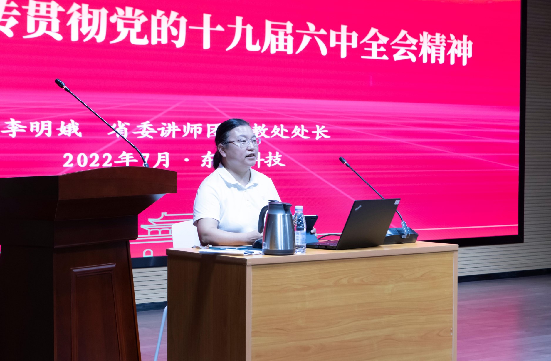 李明娥以“巾帼心向党、喜迎二十大”为主题,结合“强国复兴有我”主题教育,就十九届六中全会精神进行了宣讲。她从六中全会精神怎么学、怎么看,深刻认识党的百年奋斗的历史经验以及如何学习贯彻六中全会精神四个方面进行授课,帮助大家更加深入、准确、系统学习领会全会精神,开拓思维,凝聚共识。
