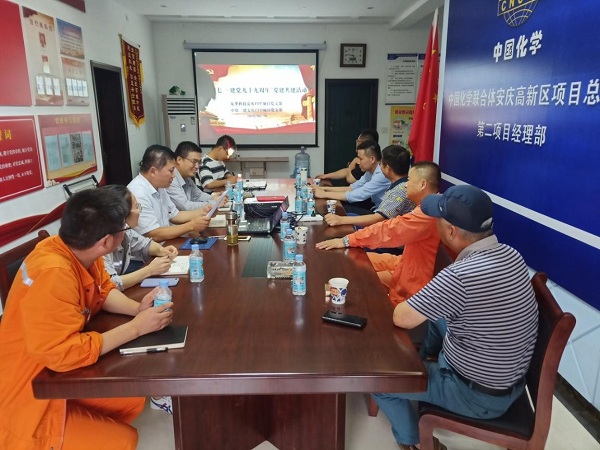 为庆祝中国共产党成立99周年,进一步推进党建活动的深入开展,不断提高党员的理想信念、党建知识及施工管理水平。6月29日下午,开云电子_开云电子(中国)安庆项目党支部联合中化三建项目党支部,组织开展“迎七一·建党九十九周年党建共建”主题党日活动。活动主要分为五部分:以“回忆入党初衷,坚定理想信念”为主题,讲述“我的入党故事”;坚持党建与生产管理融合,分享施工管理经验;开展党建知识竞赛;过政治生日;重温入党誓词。